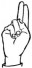 На ћирилици написано МИЛОМИРКА КОЈИЋ састоји се из 14 слова [?]. Исписано ћириличном једноручном азбуком за глувонеме: